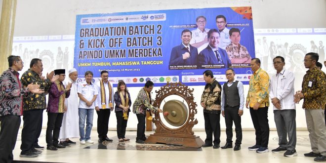 BANDARLAMPUNG (sundalanews.com) – Setelah sukses pada batch 1 dan 2, Asosiasi Pengusaha Indonesia (Apindo) Lampung menggelar peluncuran Program UMKM Merdeka Batch 3, di Universitas Teknokrat Indonesia (UTI), dan diikuti ratusan mahasiswa dari 13 perguruan tinggi se-Lampung, Kamis (16/3/23).