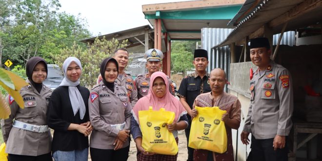 Wakapolres Tulang Bawang Barat mengatakan kegiatan ini sebagai bentuk kepedulian dan perhatian kepada sesama. Tampak Wakapolres Tulang Bawang Barat bersama anggota bagikan sembako kepada warga kurang mampu guna meringankan beban masyarakat.