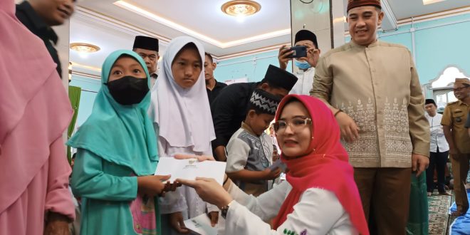 Pesawaran (sundalanews.com) – Ratusan kaum dhuafa dan puluhan anak yatim piatu di Desa Penengahan Kecamatan Way Khilau dan Desa Kuta Dalom Kecamatan Way Lima diberikan santunan oleh Bupati Pesawaran, H. Dendi Ramadhona didampingi Ketua TP PKK Kabuoaten Pesawaran Nanda Indira Dendi.