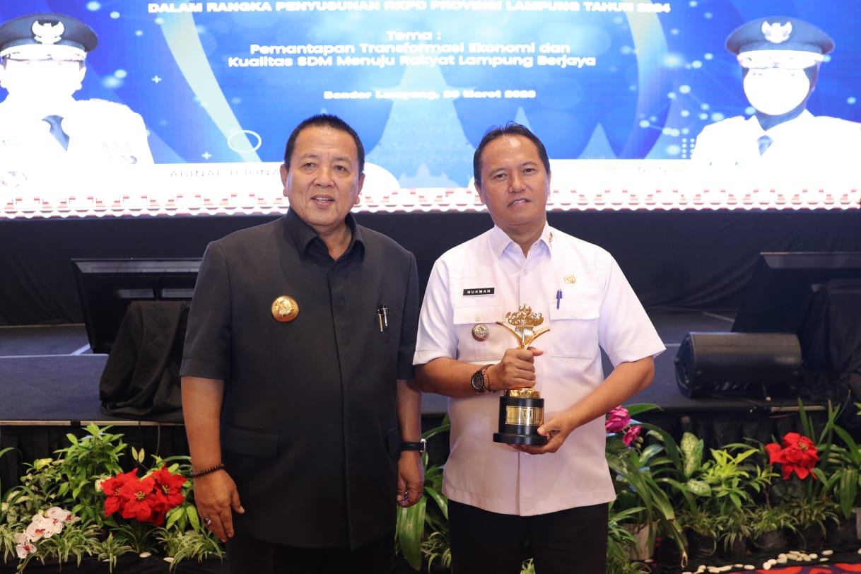 Penghargaan tersebut diberikan Gubernur Lampung Arinal Djunaidi sebagai bentuk apresiasi dan motivasi untuk Kabupaten/Kota yang telah berhasil memajukan pembangunan.