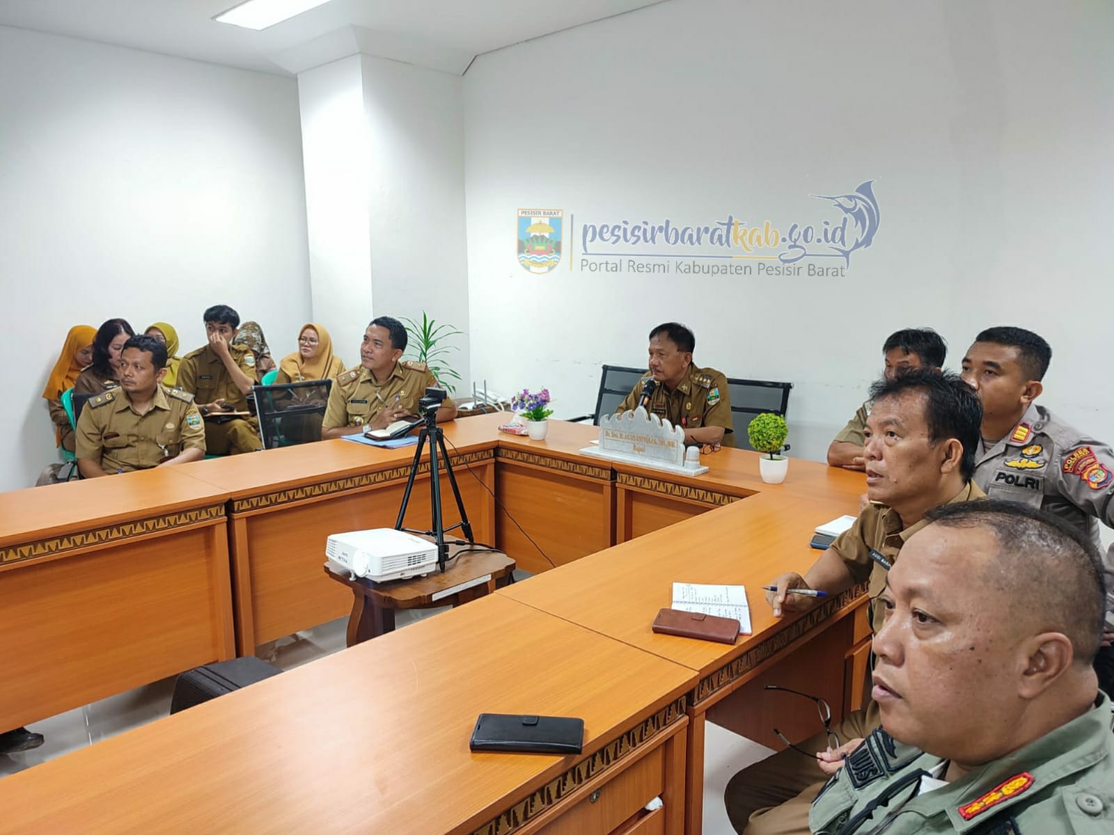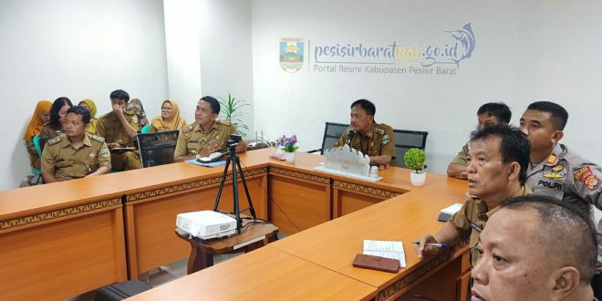 beserta jajarannya, secara virtual melalui aplikasi zoom meeting, bertempat di Ruang Media Center, Gedung A Lantai 1, Komplek Perkantoran Pemerintah Kabupaten (Pemkab) Pesisir Barat, Selasa (28/3/23).