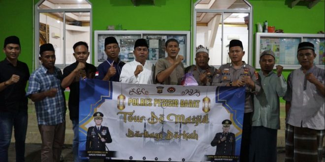 Pesisir Barat (sundalanews.com) – Polres Pesisir Barat melaksanakan kegiatan tour de masjid Ramadhan hari ke 7 di Masjid Al Mujahidin Kelurahan Pasar Krui Kec. Pesisir Tengah Kabupaten Pesisir Barat, Kamis sekitar jam 17.00 WIB, (30/03/2023).