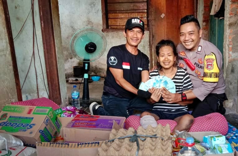 Lampung Tengah (sundalanews.com) – Wujud kepedulian Polri, Bhabinkamtibmas jajaran Polsek Kalirejo, Polres Lampung Tengah, Polda Lampung yakni Bripka Sinurat didampingi Bripka Leonardo selaku Bhabinkamtibmas Polsek Bangun Rejo sekaligus pendiri Lembaga Sosial Gerakan Pemuda Lampung, mengunjungi Ibu Hartini (45) warga Kp. Sridadi Kecamatan Kalirejo Kabupaten Lampung Tengah. Senin (3/4/23)