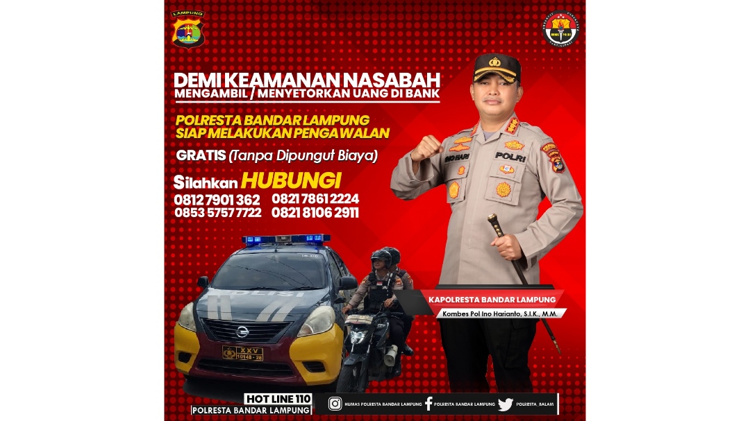 Cegah Pencurian Kepada Nasabah Bank, Polresta Bandar Lampung Siapkan Pengawalan Gratis