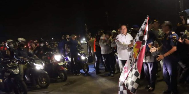 Bandar Lampung (sundalanews.com) – Gubernur Lampung Arinal Djunaidi menyambut Kedatangan pemudik yang menggunakan kendaraan roda dua yang menumpang KM Dobonsolo bertempat di Dermaga C Pelabuhan Panjang, Kamis (20/04/2023).