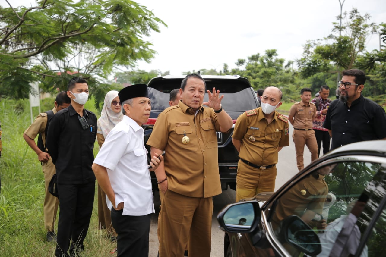LAMPUNG SELATAN (sundalanews.com) – Gubernur Lampung Arinal Djunaidi meninjau rencana lokasi pembangunan gerbang selamat datang atau gerbang ikonik di Jalan Terusan Ryacudu, Senin (10/4/2023).
