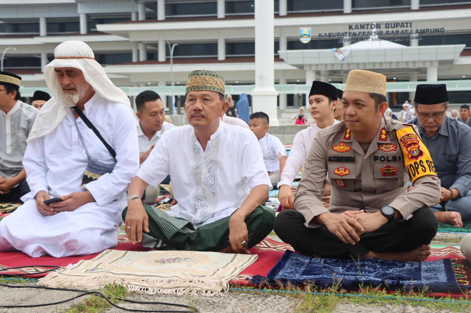 Kapolres Pesisir Barat, Forkopimda bersama masyarakat Melaksanakan Sholat Ied Berjamaah di lapangan Pemda Pesisir Barat