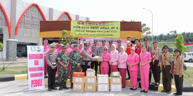 Sambungnya “Pemberian bingkisan kepada anggota yang sedang melaksanakan tugas di Pospam Operasi Ketupat Krakatau 2023 sebagai wujud motivasi kepada anggota yang sedang melaksanakan pengamanan. Semoga bingkisan yang kami berikan dapat bermanfaat bagi anggota di pos pengamanan dan pelayanan Ketupat Krakatau 2023” ungkap Ny. Lurie
