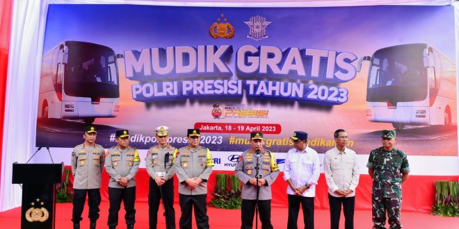 Jakarta (sundalanews.com) – Kapolri Jenderal Listyo Sigit Prabowo bersama dengan stakeholder terkait resmi melepas 434 bus yang mengangkut masyarakat untuk pulang ke kampung halamannya masing-masing dalam program ‘Mudik Gratis Polri Presisi Tahun 2023’.