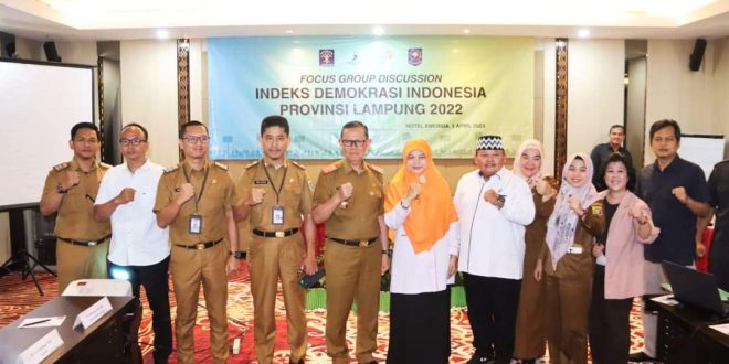 Bandar Lampung (sundalanews.com) – Gubernur Lampung yang diwakili Sekretaris Daerah Provinsi Lampung Fahrizal Darminto membuka acara Forum Group Discussion Indeks Demokrasi Indonesia (IDI) Lampung, di Hotel Emersia, Senin (03/04/2023).