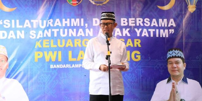 Dalam kegiatan tersebut, Ketua PWI Provinsi Lampung didampingi Sekdaprov Lampung memberikan santunan bagi 50 anak yatim dari 2 panti asuhan.