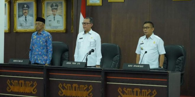 Hadir mendampingi Sekdaprov Lampung, Kepala Biro Organisasi Sekretariat Daerah Provinsi Lampung Lukman. (Dinas Kominfo dan Statistik Provinsi Lampung).