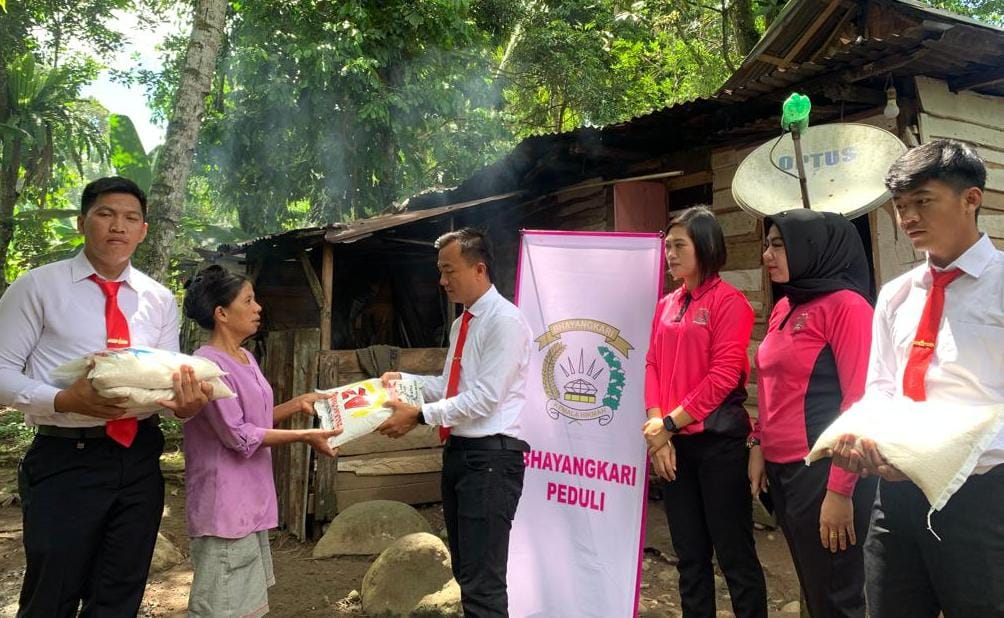 Kasat Reskrim Polres Tanggamus Iptu Hendra Safuan, S.H., M.H mengatakan, pembagian bantuan kemanusiaan untuk negeri berupa beras ukuran 5 kilogram sebanyak 15 karung dan dalam penyalurannya didampingi oleh Bhayangkari.