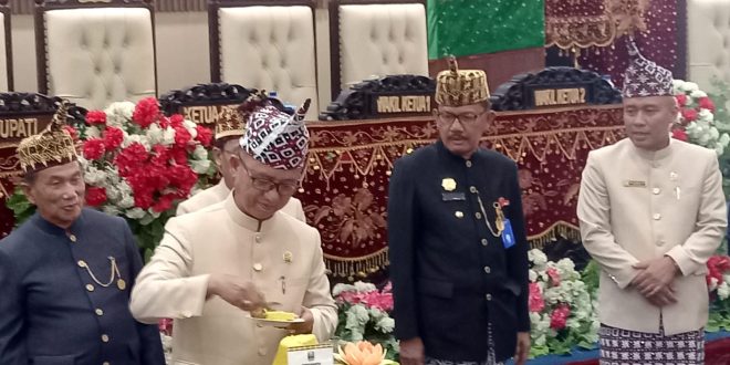 Pesisir Barat (sundalanews.com) – Bupati Pesisir Barat, Dr. Drs. Agus Istiqlal, S.H., M.H. dengan didampingi Wakil Bupati Pesisir Barat, A. Zulqoini Syarif, S.H. menghadiri Rapat Paripurna Dewan Perwakilan Rakyat Daerah (DPRD), dalam rangka memperingati “Hari Ulang Tahun Kabupaten Pesisir Barat Ke-10 Tahun 2023” di Ruang Rapat, Gedung DPRD Kabupaten Pesisir Barat Lantai 3, Selasa (02/05/2023).
