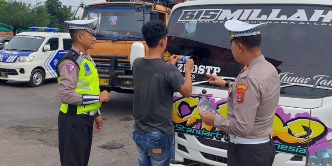 Lebih lanjut, Kasat Lantas menambahkan bahwa personil dilapangan juga melakukan penempelan stiker yan berisi tentang imbauan larangan ODOL pada setiap kendaraan angkutan barang yang melintas.