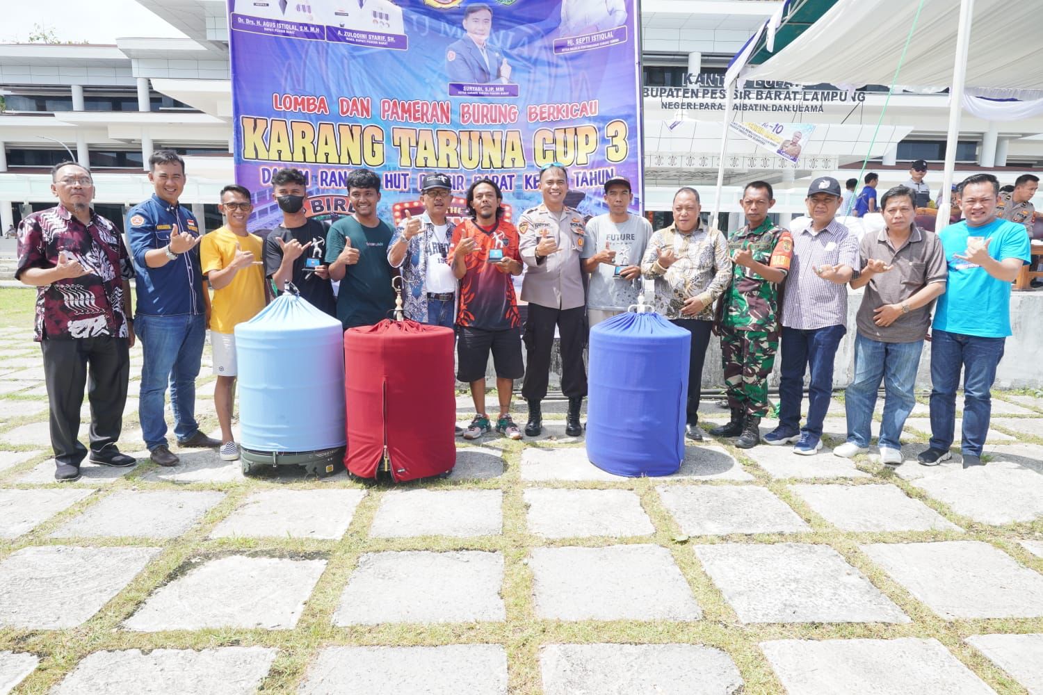 Dalam kesempatan yang sama, Bupati Pesisir Barat, Dr. Drs. Agus Istiqlal, S.H., M.H, menyampaikan bahwa Pemkab Pesisir Barat siap mendukung dan menyambut baik, serta mengucapkan terimakasih dan apresiasi yang sebesar-besarnya atas diselenggarakannya lomba Kicau Mania Karang Taruna Cup ke-3.