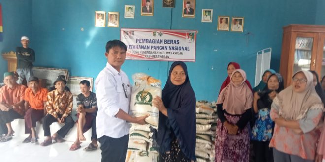 Pesawaran (sundalanews.com) – Pemerintah Desa Penengahan Kecamatan Way Khilau Kabupaten pesawaran menyalurkan bantuan pangan tahun 2023 tahap kedua dari BULOG dan Badan Pangan Nasional (Bapanas), Lokasi penyaluran bantuan tersebut di Kantor Balai Desa penengahan pada pukul 08.00 WIB – selesai dengan membawa Foto Copy KTP.