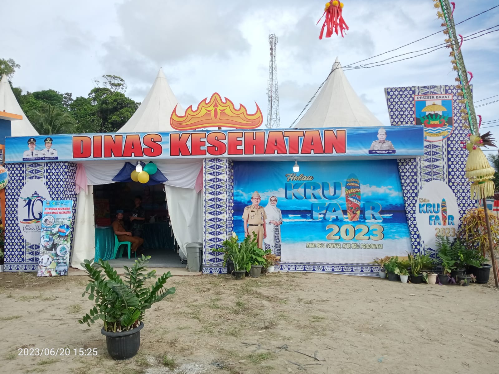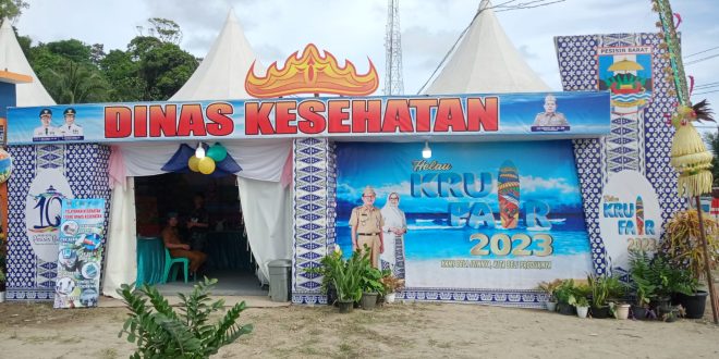 Stand Pameran Dinas Kesehatan Pesisir Barat melayani pemeriksaan kesehatan dan pengobatan gratis bagi masyarakat setempat selama enam hari sejak tanggal 20 hingga 26 Juni 2023.