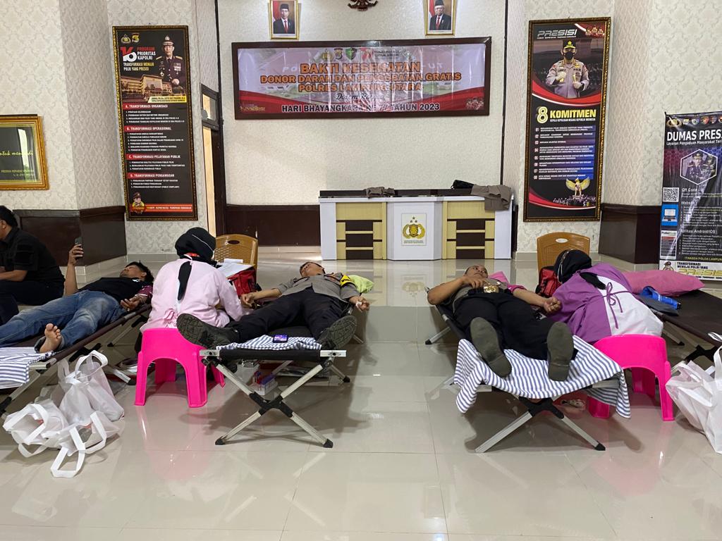 Jelang HUT Bhayangkara ke-77, Polres Lampung Utara Gelar Bakti Kesehatan Donor Darah