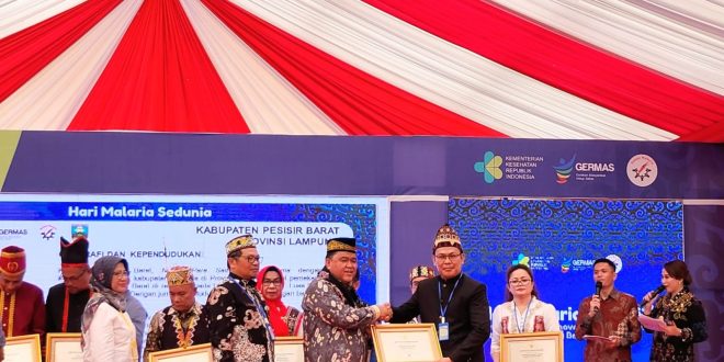 Pesisir Barat (sundalanews.com) – Kabupaten Pesisir Barat kembali mendapatkan prestasi dengan terbebasnya kabupaten ini dari penyakit malaria, apresiasi kali ini datang dari Kementerian Kesehatan yang di terima oleh Kepala Dinas Kesehatan Pesisir Barat Tedi Zadmiko pada puncak Peringatan Hari Malaria Sedunia Tahun 2023.