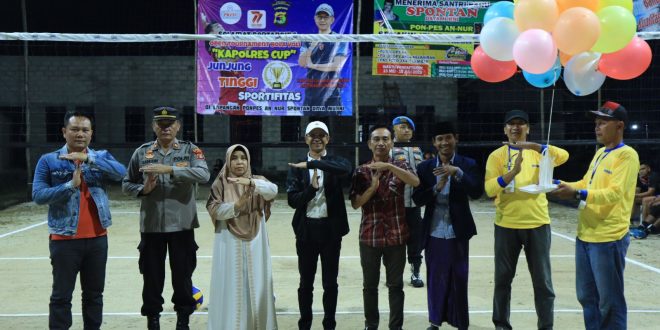 Tulang Bawang Barat (sundalanews.com) – Kapolres Tulang Bawang Barat AKBP Ndaru Istimawan, S.IK secara resmi membuka turnamen Bola Voli Kapolres Cup 2023 di Lapangan Pondok Pesantren An Nur Spontan Dayamurni Kecamatan Tumijajar Kabupaten Tulang Bawang Barat, Minggu Malam (25/6/2023).
