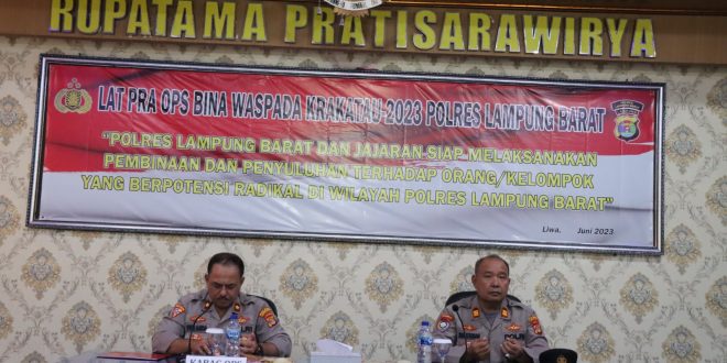 LAMPUNG BARAT (sundalanews.com) – Polres Lampung Barat Polda Lampung melaksanakan Lat Pra Ops Bina Waspada Krakatau 2023, bertempat di Aula Rupatama Polres Lampung Barat, Sabtu (03/06/2023).