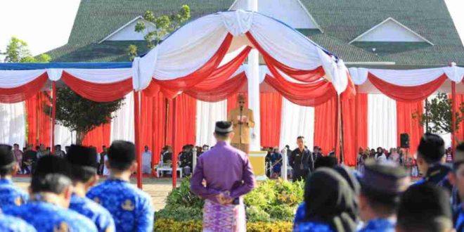 PRINGSEWU (sundalanews.com) – Peringatan Hari Lahir Pancasila di Kabupaten Pringsewu, Lampung diperingati dalam satu upacara di lapangan pemerintah daerah setempat, Kamis (01/06/23), dengan inspektur upacara Penjabat Bupati Pringsewu Adi Erlansyah. Turut hadir pada upacara yang diikuti aparatur sipil negara, kepolisian dan TNI serta elemen lainnya, Sekretaris Daerah Kabupaten Pringsewu Drs.Heri Iswahyudi, M.Ag. beserta jajaran pemerintah daerah, DPRD dan forkopimda, Ketua TP-PKK, DWP dan Ikada, LVRI, FKUB, tokoh adat, agama dan pemuda, pimpinan perguruan tinggi serta berbagai unsur lainnya.