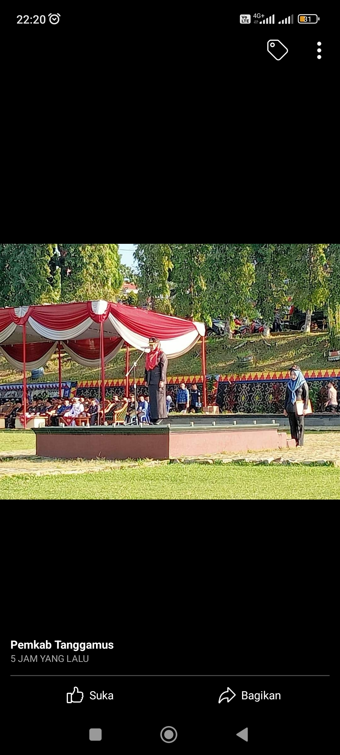 Sementara itu, peserta upacara diantaranya TNI Kodim 0424 Tanggamus, gabungan Polres Tanggamus, Satpol PP, Dishub dan gabungan ASN Pemkab Tanggamus.