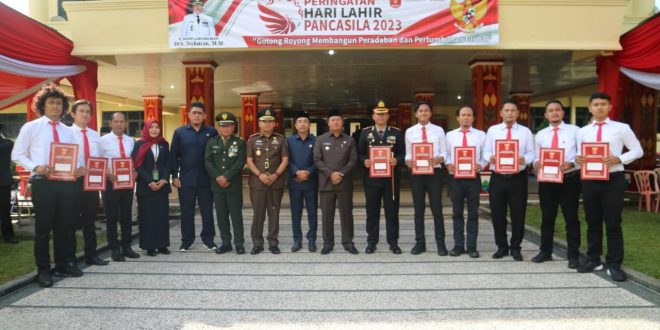 LAMPUNG BARAT (sundalanews.com) – Penjabat (Pj) Bupati Kabupaten Lampung Barat Drs. Nukman M.M menyerahkan piagam penghargaan kepada jajaran Polres Lampung Barat Polda Lampung atas keberhasilan mengungkap dan mengamankan kasus pembunuhan anak dengan cepat di Kecamatan Air Hitam Kabupaten setempat.
