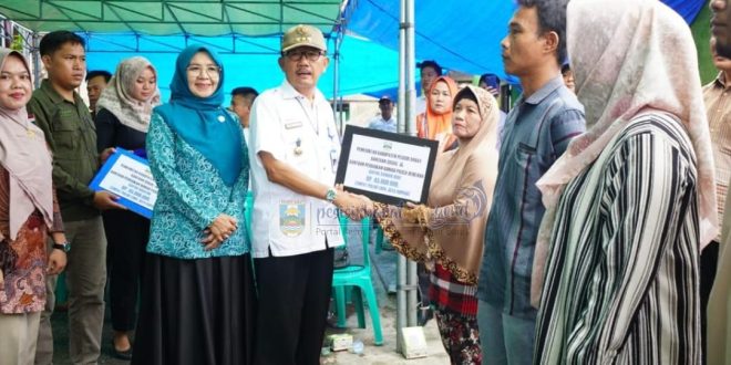 PESISIR BARAT (sundalanews.com) – Bupati Pesisir Barat (Pesibar), Dr. Drs. Agus Istiqlal, S.H., M.H., didampingi Ketua Tim Penggerak-Pemberdayaan Kesejahteraan Keluarga (TP-PKK) Pesibar, Septi Istiqlal, menyerahkan Bantuan Sosial (Bansos) dan bantuan perbaikan rumah pasca musibah kebakaran di Pekon Penengahan Kecamatan Karya Penggawa. Penyerahan bantuan dilangsungkan di lokasi kebakaran di Pekon Penengahan, Rabu (26/7/2023).