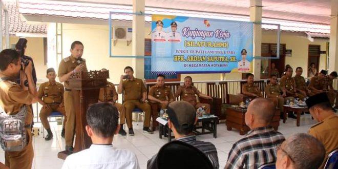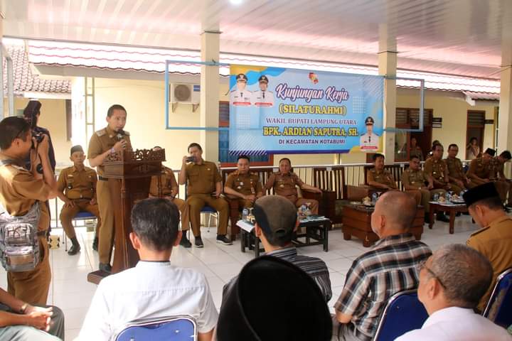 Kotabumi (sundalanews.com) – Wakil Bupati Lampung Utara, Ardian Saputra, acara Kunjungan Kerja (Kunker) sekaligus silaturahmi dengan masyarakat Enam Kelurahan di Kecamatan Kotabumi. Acara dipusatkan di Aula Kecamatan dan di Aula Kelurahan Sribasuki. Senin, (31/07/2023).
