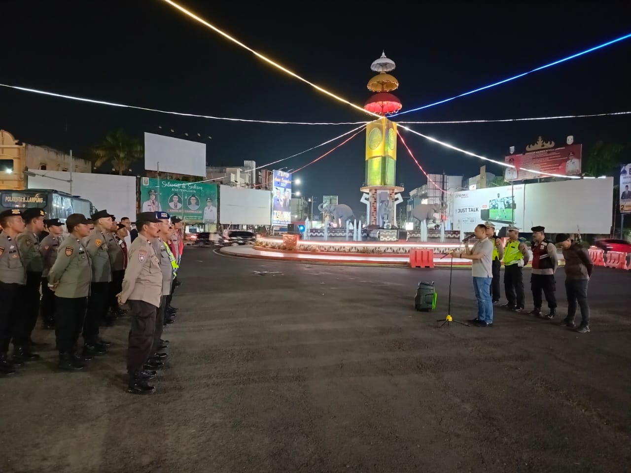 Apel kesiapan dilaksanakan di Tugu Adipura Kota Bandar Lampung dengan dipimpin langsung oleh Kasat Narkoba Polresta Bandar Lampung Kompol Gigih Andri Putranto dengan dihadiri sejumlah personel gabungan satuan Opsnal Polresta Bandar Lampung, Sabtu (5/08/2023) malam.