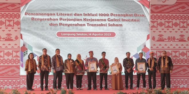 Masyarakat dapat mengubah sampah yang disetorkan menjadi tabungan dan saham, sementara sampah tersebut akan dibeli kembali oleh PT Coca Cola Europasifics Partners Indonesia.” – ujar Bambang Hermanto selaku Kepala OJK Provinsi Lampung “Telah disalurkan KUR kepada 78 debitur dengan total penyaluran sebesar Rp4,56 Milyar oleh BPD Lampung dan BRI, penambahan 6 agen Laku Pandai Brilink dan L-Smart, penyerahan 2300 lembar saham, pembukaan Galeri Investasi Desa dan penandatanganan Komitmen Pencanangan Literasi dan Inklusi Pasar Modal kepada 1000 perangkat dan Masyarakat Desa di Desa Kelawi, Desa Seloretno dan Desa Bumidaya Kabupaten Lampung Selatan. Desa Inklusi Keuangan diharapkan dapat mendorong peningkatan literasi dan inklusi keuangan desa untuk mencapai target indeks inklusi keuangan pada tahun 2024 sebesar 90 persen sesuai dengan amanat Peraturan Presiden Nomor 114 Tahun 2020” tutup Bambang.