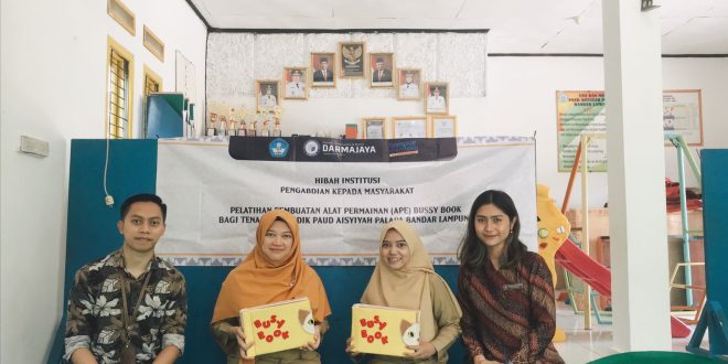 Ketua Tim Pengabdian Masyarakat, Ambar Aditya Putra mengatakan untuk mendukung pembelajaran kepada anak usia dini yang kreatif dan inovatif dengan memberikan pelatihan kepada para pendidik. “Kami mengenalkan cara pembuatan Bussy Book kepada tenaga pendidika PAUD Aisyiyah Palapa,” ungkap dia seperti mengutip dari https://darmajaya.ac.id.