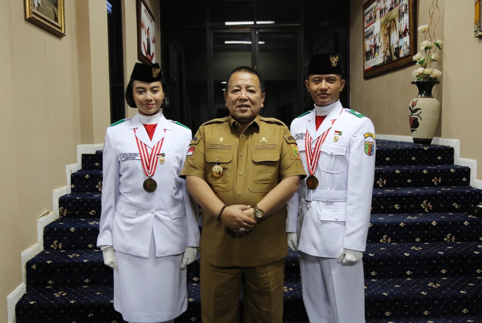 Kedua anggota Paskibraka tersebut adalah Anggita Nazara siswi SMAN 2 Bandar Lampung dan Frans Timothy Prawira Siallagan siswa SMA Taruna Kebangsaan Lampung Selatan.