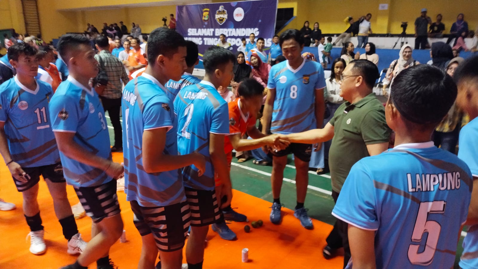 Bandar Lampung (sundalanews.com) – Kapolda Lampung Irjen Pol Helmy Santika memberikan semangat kepada tim Bola Voli putra Lampung pada Kapolri Cup 2023 pada pertandingan terakhir di zona III di GOR Sumpah Pemuda Way Halim Bandarlampung Minggu 6 Agustus 2023 malam.