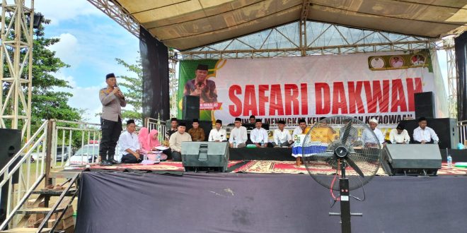 Mesuji (sundalanews.com) – Kapolsek Way Serdang bersama Jajaran Polres Mesuji Polda Lampung menghadiri acara Pengajian Akbar dalam rangka Safari Dakwah di lapangan Wira Praja Desa Buko Poso, Kecamatan Way Serdang, Kabupaten Mesuji, Minggu (06/08/23) Pagi.