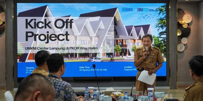 Bandar Lampung (sundalanews.com) – Pemerintah Provinsi Lampung diwakili Asisten Bidang Perekonomian dan Pembangunan, Kusnardi mengikuti Kick Off Meeting UMKM Center Project PKOR Way Halim di BRI Kantor Wilayah Lampung, Selasa (22//8/2023).