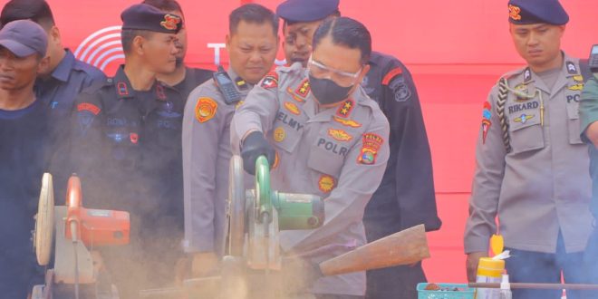 Lampung Selatan (sundalanews.com) – Kapolda Lampung Irjen Pol Helmy Santika memusnahkan senpi rakitan beserta amunisinya pada perayaan Hari Jadi Team Khusus Anti Bandit (Tekab) 308 di Mapolda Lampung. Rabu (30/8/2023).