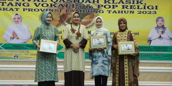 Selanjutnya Ketua DPW LASQI Provinsi Lampung, Riana Sari Arinal dalam sambutannya menyampaikan bahwa pelaksanaan Festival Seni dan Qasidah Tingkat Provinsi Lampung yang terdiri dari Lomba Qasidah, Bintang Vokalis dan Pop Religi ini merupakan ajang seleksi untuk memilih dan menetapkan duta-duta Bintang Vokalis dan Pop Religi yang akan dikirim ke Festival Seni dan Qasidah Tingkat Nasional pada bulan November di Provinsi Sumatera Utara.