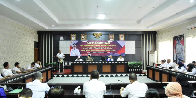 TUBABA (sundalanews.com) – Penjabat (Pj) Bupati Tulang Bawang Barat (Tubaba) Drs. M. Firsada memimpin jalannya Rapat Koordinasi Tim Pengendalian Inflasi Daerah (TPID) Kabupaten Tubaba Dalam Rangka Mitigasi dan Antisipasi Dampak El-Nino. Di Ruang Rapat Bupati, Kamis (24/08/2023).