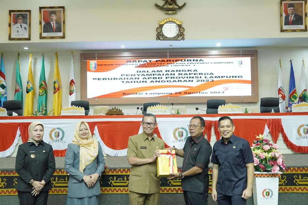 Bandar Lampung (sundalanews.com) – Sekretaris Daerah Provinsi Lampung Fahrizal Darminto, menghadiri Rapat Paripurna DPRD Provinsi Lampung Dalam Rangka Penyampaian Raperda Perubahan APBD Provinsi Lampung Tahun Anggaran 2023, bertempat di Ruang Sidang DPRD, Senin (28/08/2023).