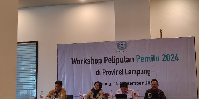 BANDAR LAMPUNG (sundalanews.com) – Menghadapi pemilihan umum (pemilu) pada 14 Februari 2024 mendatang, Dewan Pers menggelar “Workshop Peliputan Pemilu Legislatif dan Pemilu Presiden oleh Media di Lampung” bertempat di Hotel Novotel Jl. Gatot Subroto, Bandar Lampung, Senin (18/09/2023).