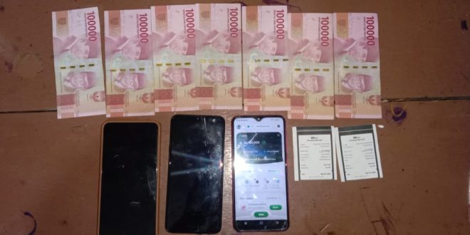 Barang bukti yang berhasil di amankan berupa Uang tunai sejumlah Rp 700.000 dengan pecahan seratus ribuan, 2(satu) Lembar Kertas Bukti transfer, 1(satu) unit handphone NOKIA warna Biru, 1(satu) unit Handphone VIVO warna Merah, 1(satu) unit handepone OPPO warna biru dan hitam dan 1 (satu) unit handepone OPPO warna Merah.