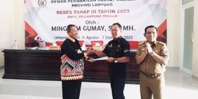 LAMPUNG TENGAH (Sundalanews.com) – Ketua Dewan Perwakilan Rakyat Daerah (DPRD) Provinsi Lampung, Mingrum Gumay SH., MH, melakukan peninjauan aspirasi berupa bantuan sumur bor dan renovasi rumah ibadah (gereja), serta kembali melakukan reses tahap III yang dilaksanakan di SMAN 1 Seputihbanyak, Lampung Tengah. Selasa (5/9/2023).