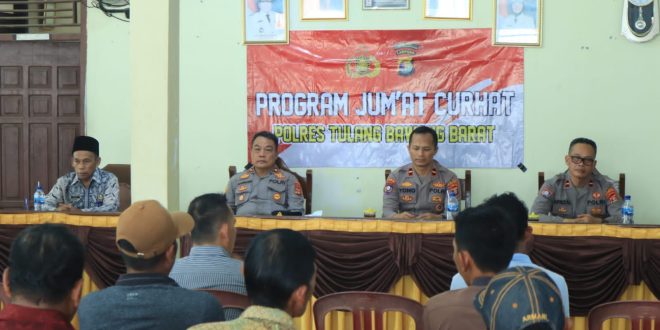 Tulang Bawang Barat (sundalanews.com) – Kepolisian Resor Tulang Bawang Barat kembali melaksanakan kegiatan Jum’at Curhat yang guna memungkinkan masyarakat untuk dapat menyampaikan secara langsung terkait keluhannya.