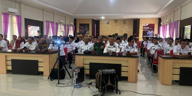 Tanggamus (sundalanews.com) – Polres Tanggamus bersama 6 Pilar di Kabupaten setempat, mengikuti kegiatan pembekalan Pengamanan Pemilu tahun 2024 aman dan damai, yang dilaksanakan Polda Lampung.