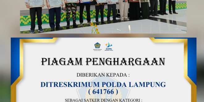 Bandar Lampung (sundalanews.com) – Ditreskrimum Polda Lampung mendapatkan Award kategori penyampaian laporan pertanggung jawaban bendahara terbaik TA.2023, yang diselenggarakan KPPN Bandar Lampung, bertempat di ballrom UIN Raden Intan Bandar Lampung, pada kamis (26/10/23)