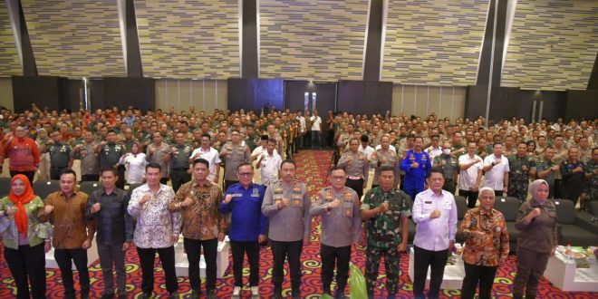BandarLampung (sundalanews.com) – Polda Lampung Bersama Forkopimda Melaksanakan Apel Sinergitas 6 Pilar Dalam Rangka Menciptakan Pemilu 2024 Yang Aman Dan Damai di Hotel Novotel BandarLampung. Kamis (12/10/2023).