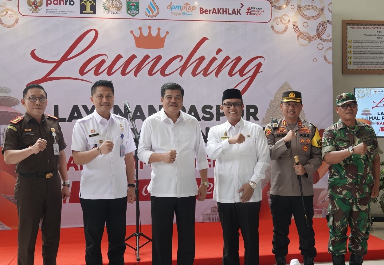 Lampung Tengah (sundalanews.com) – Kapolres Lampung Tengah, Polda Lampung AKBP Andik Purnomo Sigit, S.H., S.I.K., M.M bersama Bupati Lampung Tengah, Musa Ahmad dan Dandim 0411/KM yang diwakili oleh Danramil Gunung Sugih Kapten Inf. Probo beserta jajaran Forkopimda menghadiri acara Grand Launching Layanan Paspor di Mal Pelayanan Publik (MPP) Pemerintah Kabupaten Lampung Tengah. Rabu (25/10/23)